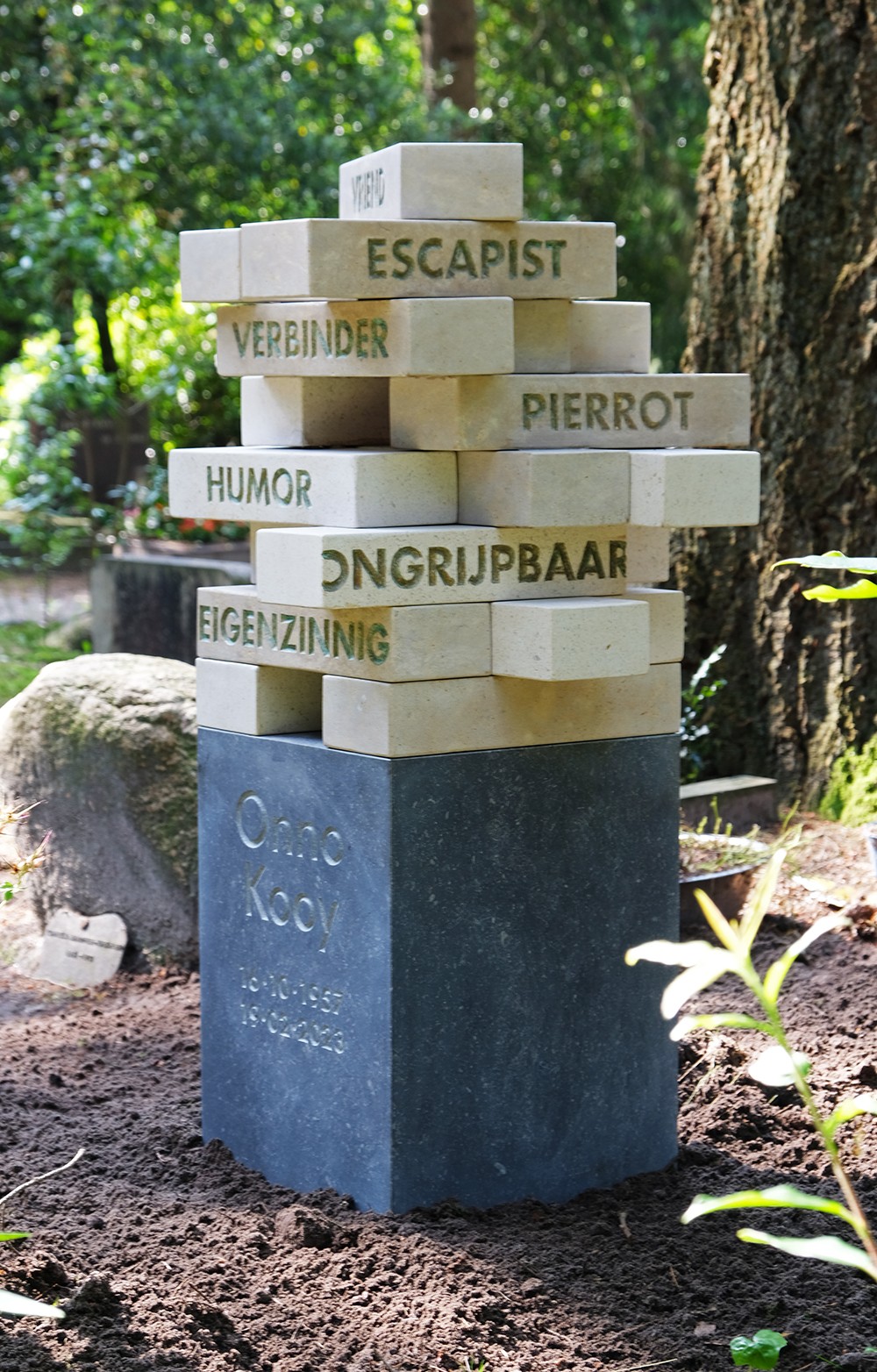 De wens van mijn opdrachtgeefster was een ruwe, wat ruige en robuuste steen, met een minimum aan tekst (ook hier